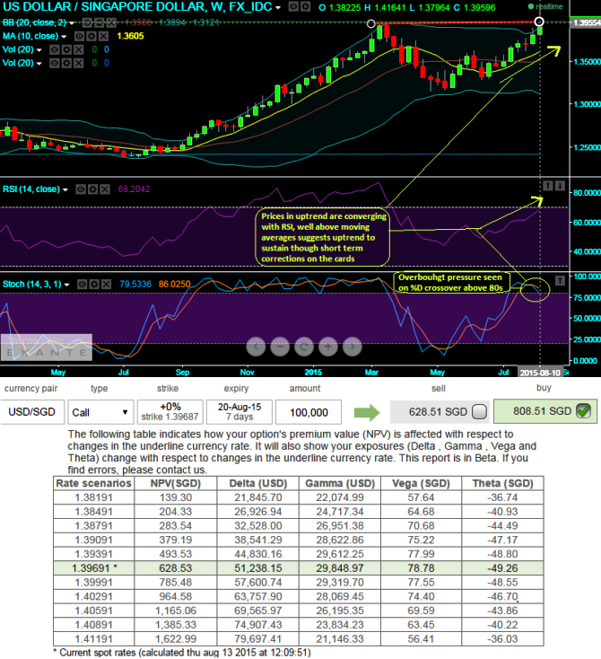Nothing wrong about the SGD losing its currency value against greenback on the back of Yuan's devaluation mechanism, USDSGD's spikes would be deemed as continuation pattern for uptrend in this pair that has affected the pair from its external factors, hence we like to remain longs on this pair on every dips.