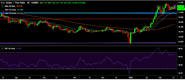 - USD/THB is currently trading around 31.22 marks.