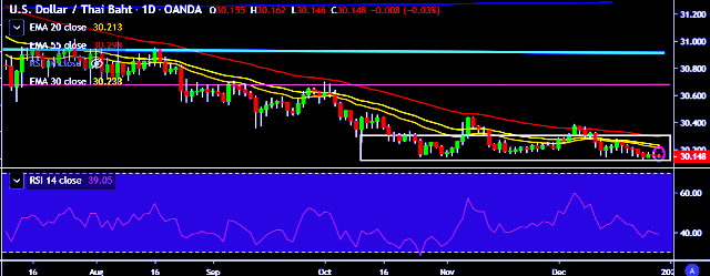 - USD/THB is currently trading around 30.14 marks.