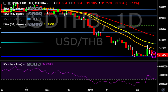 We prefer to take short position on USD/THB around 31.28, stop loss at 31.50 and target of 31.18/31.10 mark.