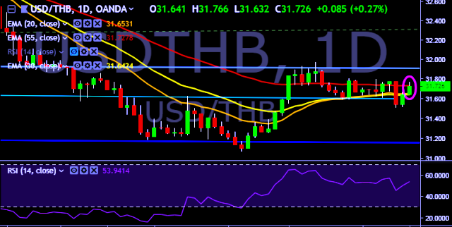 We prefer to take long position on USD/THB only above 31.78, stop loss 31.60 and target of 32.02.