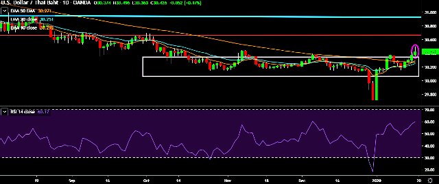 - USD/THB is currently trading around 30.43 marks.