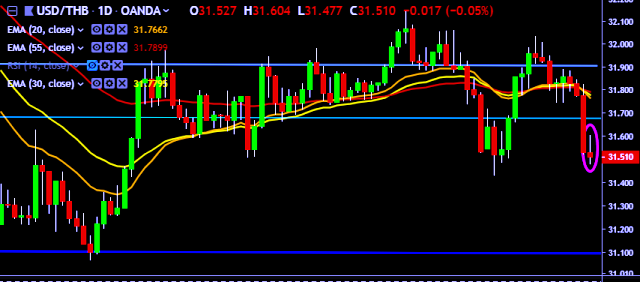 We prefer to take short position on USD/THB around 31.55, stop loss at 31.70 and target of 31.40/31.28.