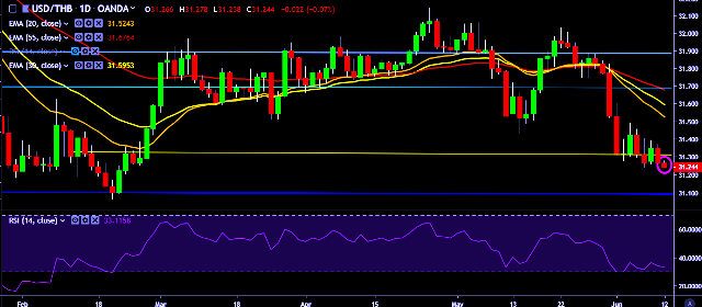 We prefer to take short position on USD/THB around 31.30, stop loss at 31.50 and target of 31.06/30.88.