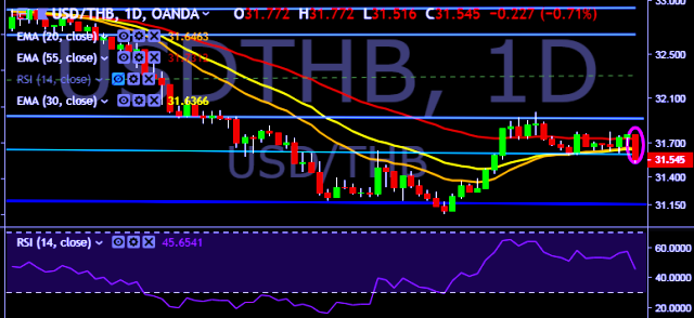 We prefer to take short position on USD/THB around 31.58, stop loss 31.78 and target of 31.20.