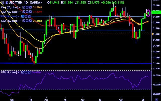 - USD/THB is currently trading around 31.97 marks.