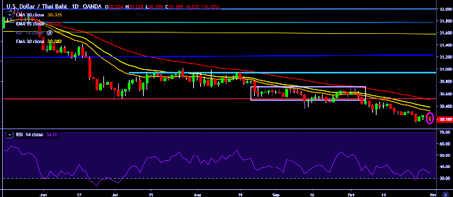 We prefer to go short on USD/THB around 30.20, stop loss at 30.40 and target of 30.02/29.84.