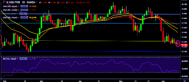 We prefer to take short position on USD/THB around 31.25, stop loss at 31.50 and target of 31.06/30.88.