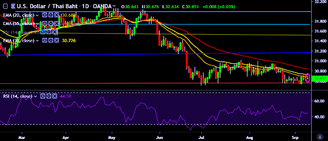 We prefer to go long on USD/THB only above 30.70, stop loss at 30.52 and target of 30.97/31.20 mark.