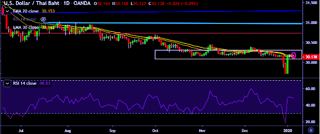 We prefer to go short on USD/THB only below 30.10, stop loss at 30.25 and target of 29.96/29.72.