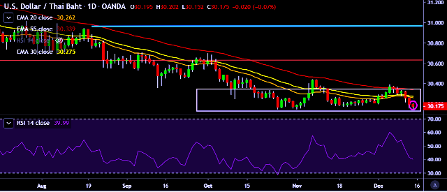 We prefer to go short on USD/THB only below 30.15, stop loss at 30.30 and target of 30.02.