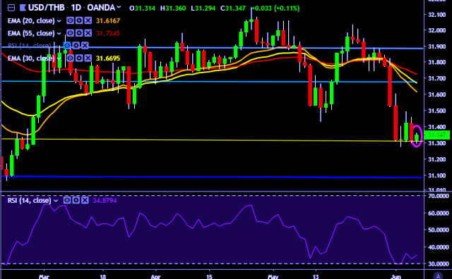 - USD/THB is currently trading around 31.34 marks.