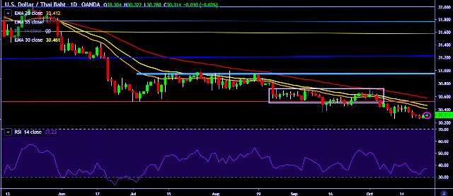 - USD/THB is currently trading around 30.32 marks.
