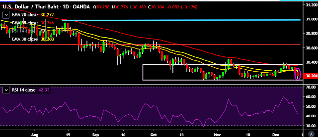 - USD/THB is currently trading around 30.20 marks.
