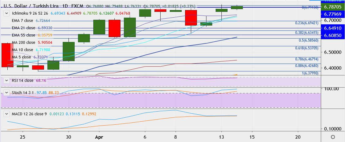 - On the downside, support is seen at 6.7528 and break below could take it near 6.7268.