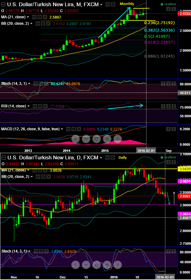 Currently, the pair is struggling at 2.9368, for now 2.9824 (stiff resistance) would be the upside bracket and 2.7519 is what we could expect a maximum slip in downside drag, on flip side, the projections for USDTRY remains at around 3.20 by mid-2016.
