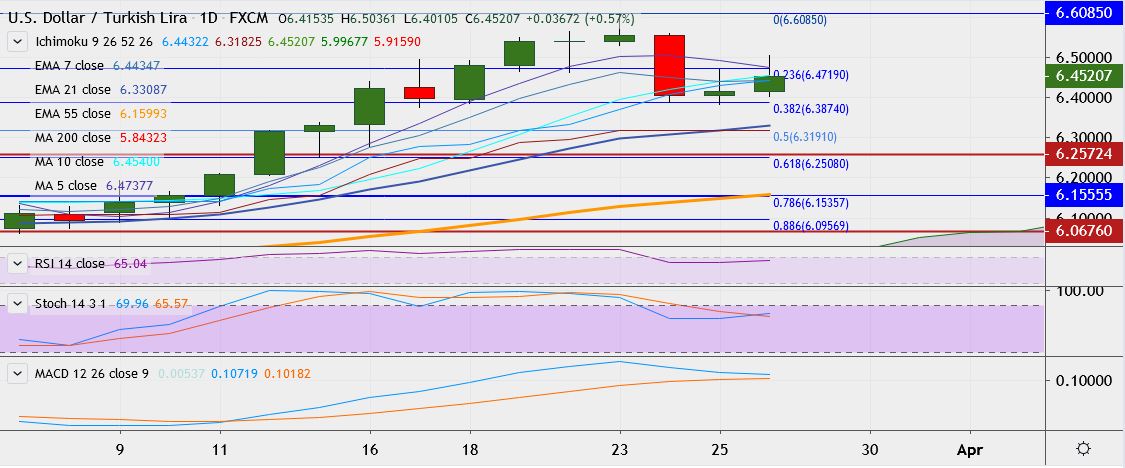 FxWirePro: USD/TRY off 1-week low, struggles to sustain gains above 6.500