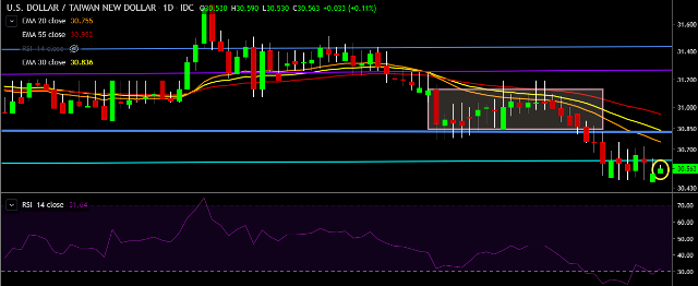 We prefer to take short position on USD/TWD only below 30.47, stop loss 30.70 and target of 30.11 mark.
