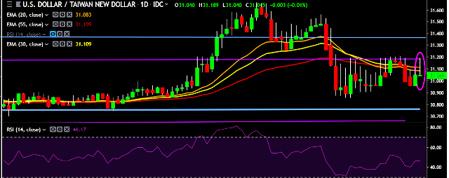 - USD/TWD is currently trading around 31.02 marks.