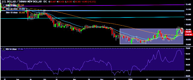 We prefer to take short position on USD/TWD around 30.35, stop loss at 30.50 and target of 30.22/30.02.