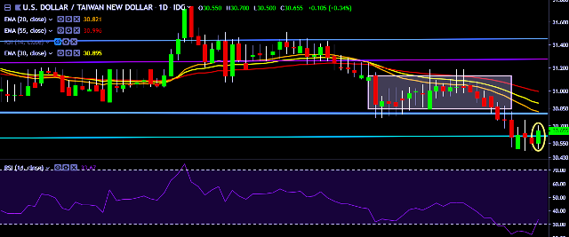 We prefer to take short position on USD/TWD only below 30.48, stop loss 30.70 and target of 30.11.