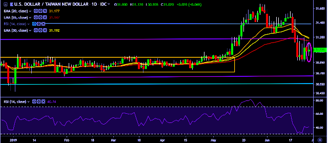 We prefer to take short position on USD/TWD only below 30.87, stop loss at 31.10 and target of 30.68/30.56.