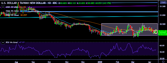 - USD/TWD is currently trading around 30.08 marks.