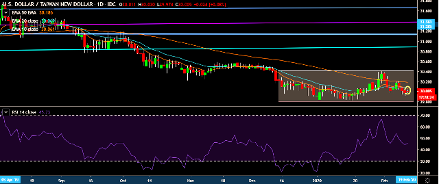 - USD/TWD is currently trading around 29.98 marks.