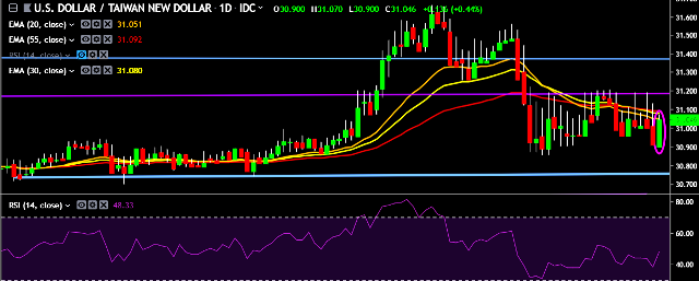 - USD/TWD is currently trading around 31.01 marks.