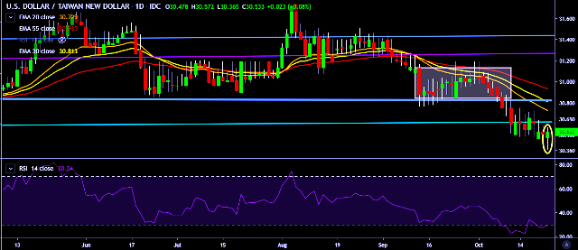 We prefer to take long position on USD/TWD only above 30.70, stop loss 30.20 and target of 31.02/31.22 mark.