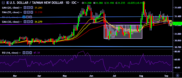 We prefer to take short position on USD/TWD only below 31.17, stop loss at 31.42 and target of 30.89/30.68.
