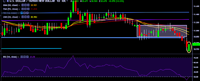 We prefer to take short position on USD/TWD around 30.70, stop loss 31.02 and target of 30.54/30.38.