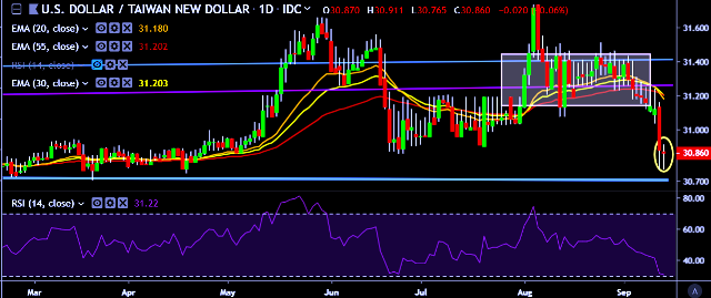 We prefer to take short position on USD/TWD around 30.90, stop loss at 31.22 and target of 30.72/30.56.