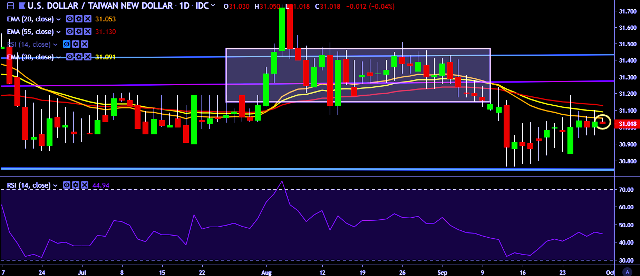 - USD/TWD is currently trading around 31.02 marks.
