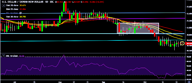 We prefer to take long position on USD/TWD only above 30.70, stop loss 30.20 and target of 31.02/31.22 mark.