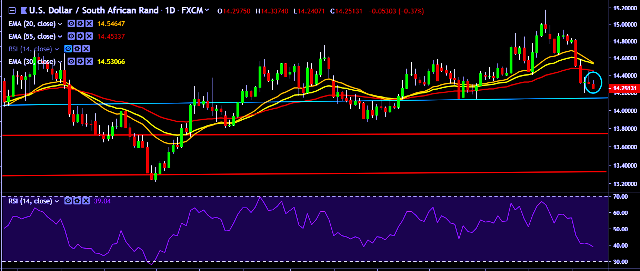 - USD/ZAR is currently trading around 14.25 levels.