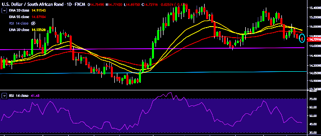 - USD/ZAR is currently trading around 14.72 levels.