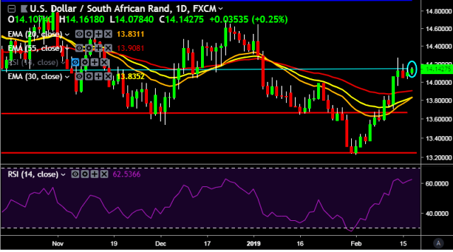 - A daily close above 14.12 will take the parity higher towards key resistances around 14.27, 14.38 and 14.64 marks respectively.