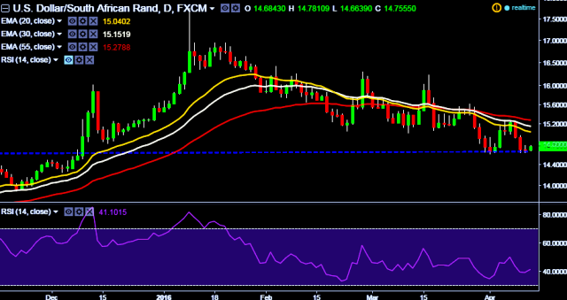 We prefer to take long position in USD/ZAR around 14.72, stop loss 14.64 and target 15.05/15.25 levels.