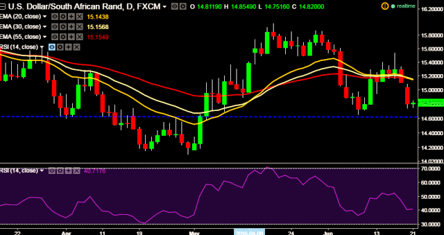 - A daily close below 14.74 will drag the parity down towards key supports at 14.64 (March 31, 2016 low) and 14.43(20D EMA) levels respectively.