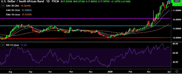 - USD/ZAR is currently trading around 17.99 levels.