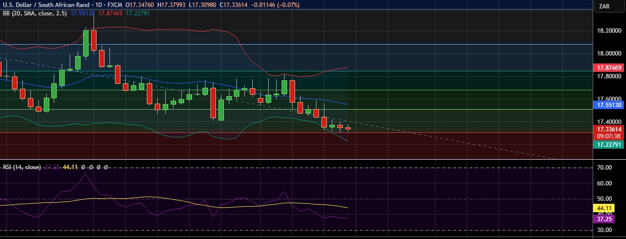 • USD/ZAR traded in narrow range on Tuesday as investors awaited the release of South Africa's inflation data and an interest rate decision later this week.