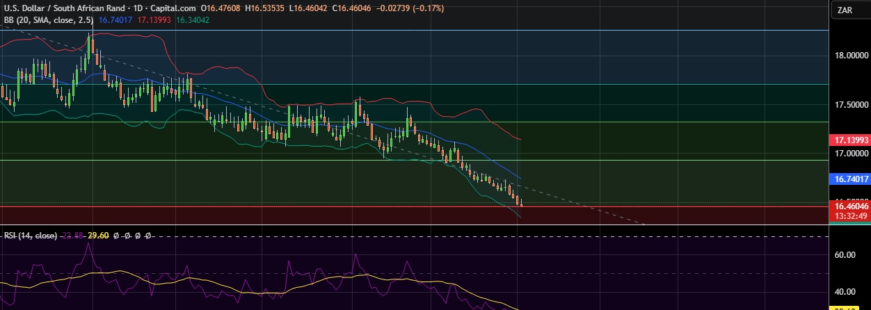 •At GMT 08:27, the pair was trading down 0.14 percent at 16.467