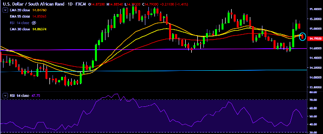 - USD/ZAR is currently trading around 14.77 levels.