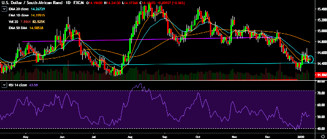 - USD/ZAR is currently trading around 14.17 levels.