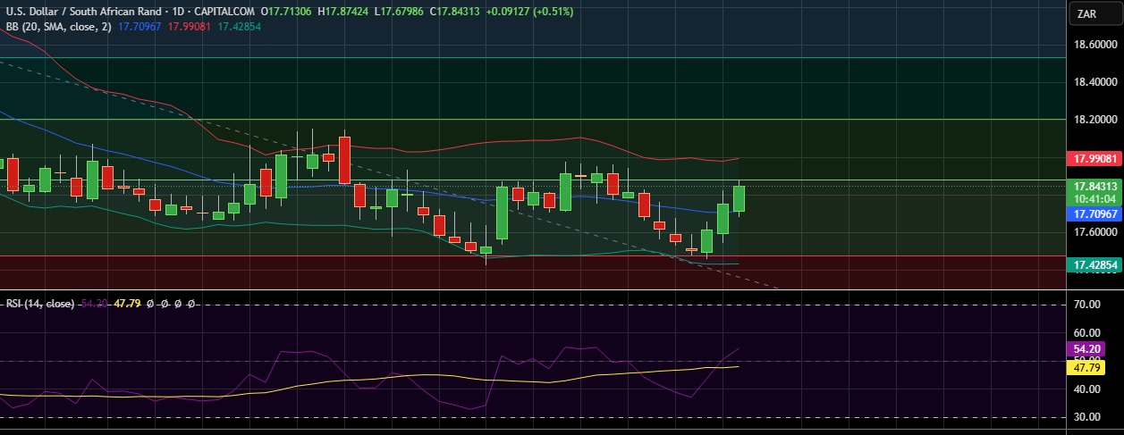 • The risk-sensitive rand slipped last week and stays weak as markets await U.S. tariff updates and the South African Reserve Bank’s rate decision on Thursday.