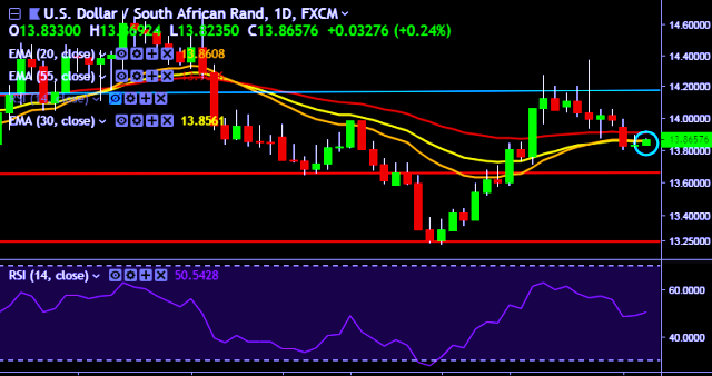 - USD/ZAR is currently trading around 13.87 levels.