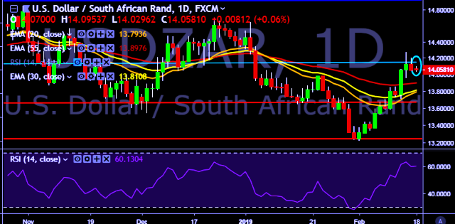 We prefer to take long position on USD/ZAR around 13.97, stop loss at 13.70 and target of 14.38.