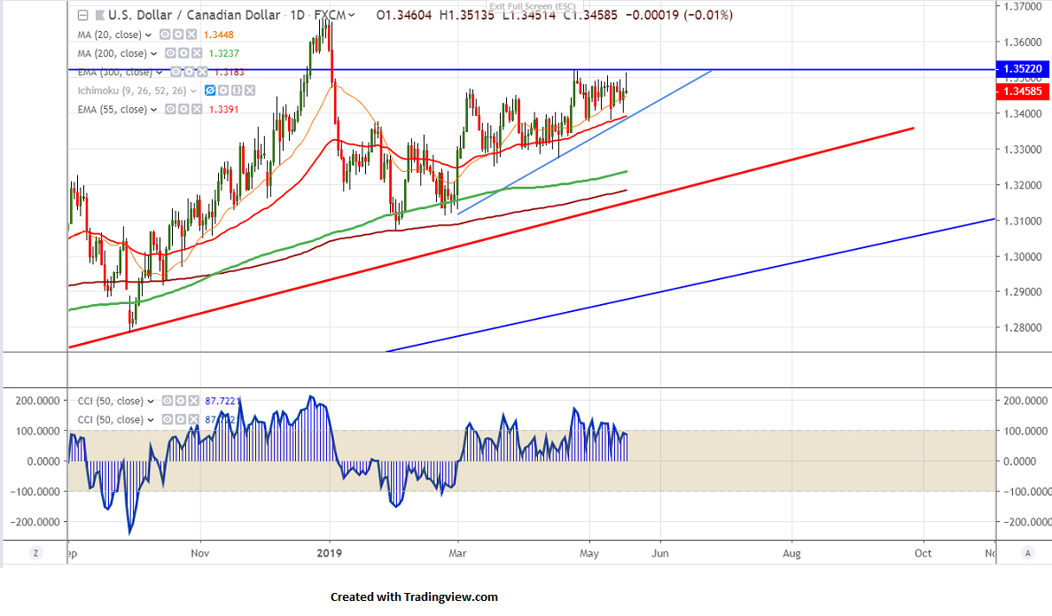 The near term resistance is around 1.3440 and any break above will take the pair to next level till 1.3500. Any break above 1.3520 will take the pair till 1.3580/1.3660.