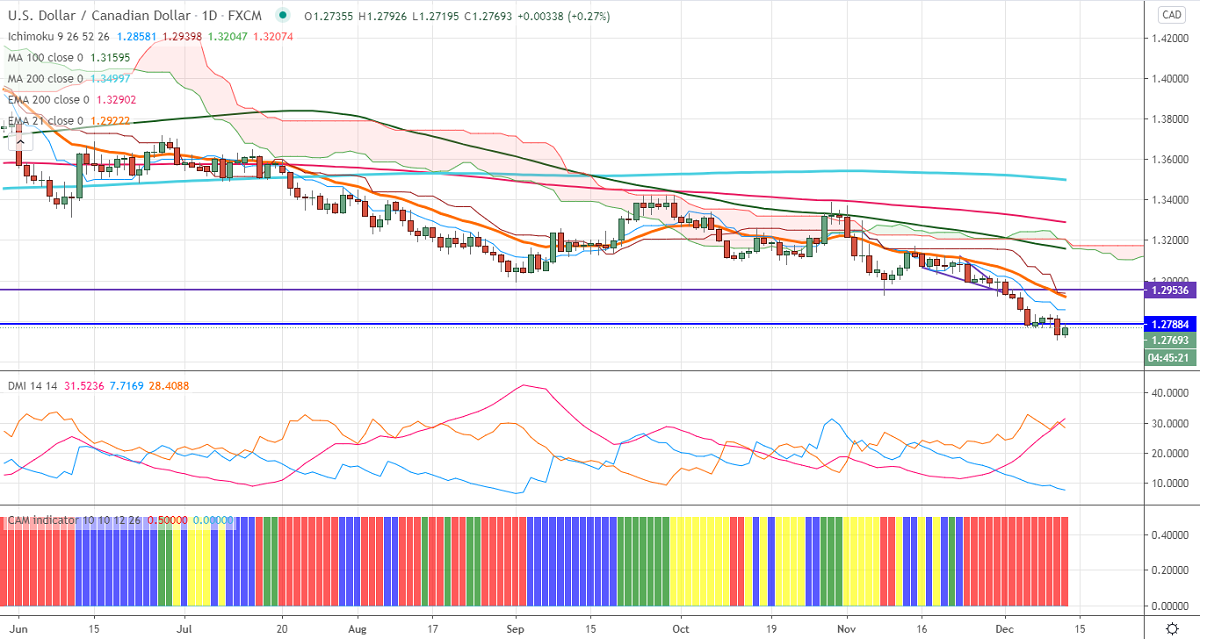 USDCAD has jumped more than 80 pips from a low of 1.27070 on short covering. The jump in oil prices is supporting the Canadian dollar at higher levels. The upbeat global markets due to COVID-19 have dragged the US dollar index below 91 levels. US Core PPI edged higher by 0.1% compared to 0.2%. While University of Michigan sentiment came at 81.4 vs forecast of 76.1. DXY is holding slightly above 91 levels, any violation above 91.20 targets 91.50. Loonie hits an intraday low of 1.27926 and currently trading around 1.27700.